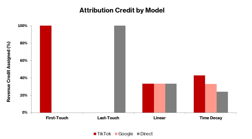 For instance, if a customer saw a TikTok ad, then clicked a Google search ad, and finally purchased after visiting the website directly, a multi-touch model might assign 30% of the credit to TikTok, 50% to Google, and 20% to direct traffic. In practice, this means that if the customer made a $100 purchase, TikTok would be credited with $30 of revenue, Google with $50, and direct traffic with $20. These revenue “credits” help marketers calculate return on ad spend (ROAS) by channel – for example, if $500 was spent on TikTok ads that collectively drove $1,500 in attributed revenue, the ROAS would be 3x. We’ll get more into ROAS later in this series.